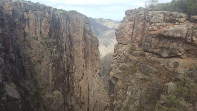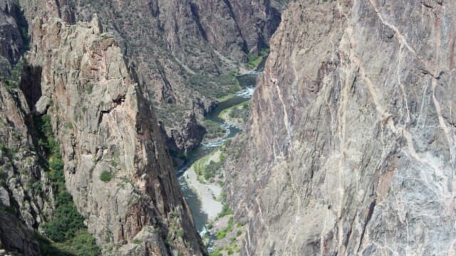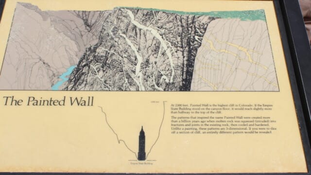 A story that began in the Precambrian that continues today. The Black Canyon of the Gunnison is unlike anything that I have witnessed on the east coast. One day we spent visiting the North Side of the canyon and it was beautiful but nothing prepared me for what I would witness at the South Side. At its highest point, the canyon drops about 2000 feet straight down into the river below. We could see a vertical wall composed of gneiss that had pegmatite intrusions cutting across it. All of this formed about 1.7 billion years ago. On top of that was sedimentary rock that was only about 100 million years old. What happened during that billion year gap? That is what we call an unconformity; a gap in the rock record. The Gunnison River drops an average of 34 ft/mi through the park while the Colorado River drops an average of only 7.5 ft/mi through the Grand Canyon. I found myself staring at the Painted Wall for quite some time, following every little contour. Pictures just don’t do it justice. Plan a trip to go here someday. You will not be disappointed!