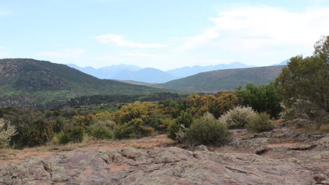 After something like 700 miles in the bus traveling across Texas and making quick stops to see some Pleistocene sand dunes and the Canadian River we entered New Mexico. Hour after hour had passed of nothing but flat terrain with dead vegetation. Then in the distance you could make out the silhouette of some volcanoes! One of our destinations would be Capulin, cinder cone volcano that last erupted over 60,000 years ago. I use a model of this volcano in a lab that I do to help students learn contour lines so I was excited to be able to be here. It was also exciting to be on an actual volcano! We were able to hike around the rim, go into the crater, and check out the geology before we hit the road again.